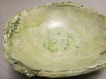 A very clumpy, carved and fascinating bowl. Swirly greenish yellowish glaze gets extra green caught in the dips and crannies. I love this bowl and am reluctant to sell it. But I've put a very high price on it, so if you are willing to pay that much, which could pay for a small dog getting spayed, then I will sell it to you. I just went to the Met in New York. I think this bowl fits right in!